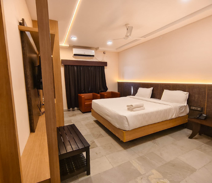 The Double Deluxe A/C Room features spacious interiors with elegant furnishings and modern design. Comfortable bedding, air conditioning, and well-planned layouts ensure a relaxing environment. Travelers looking for premium A/C rooms in Velankanni often prefer this option for added comfort. Clean and hygienic spaces maintain high standards for a safe and pleasant stay. Modern amenities provide convenience for both leisure and business travelers. It is an ideal choice for those seeking quality accommodation with reliable facilities.